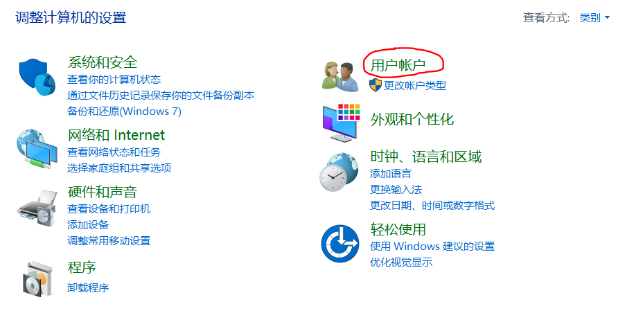 ① 在记住密码的那台计算机上,打开控制面板(可使用win+r键打开运行框,输入control,回车即可打开控制面板),点击用户账户。