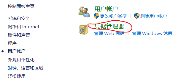 ② 然后点击凭据管理器,进而点击windows凭据。