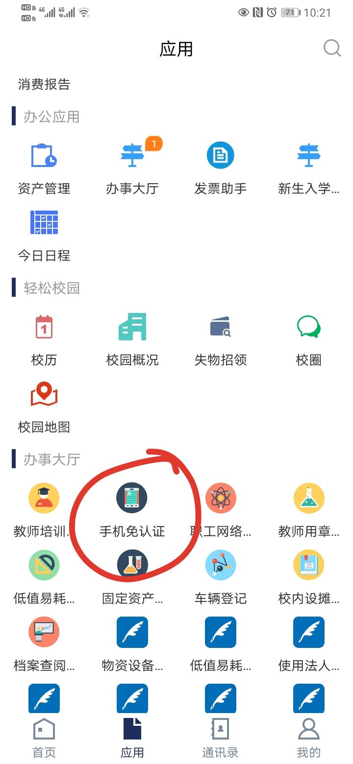 打开APP,在“办事大厅”中找到“手机免认证”,填写相应的信息,提交申请即可。