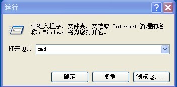 方法一.首先,单击“开始”,选择“运行”,或者按“Win+R“,出现运行对话框,在对话框中输入“cmd”,单击确定;