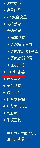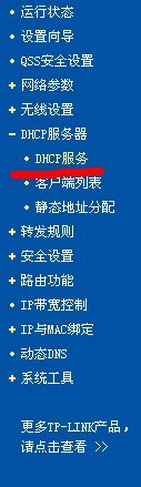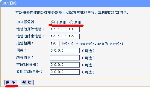 4.进入路由器设置界面,首先在界面的左侧找到DHCP服务器并单击,在右侧,有DHCP服务器,启用和不启用两个选项,选择不启用,单击保存,如图: