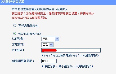 再在左侧选择无线安全设置,选择WPA-PSK/WPA2-PSK,在PSK密码后的文本框输入,你要配置的无线路由的密码,单击保存;