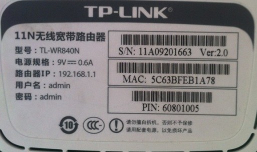 以TP-LINK为例,首先,将网线连接电脑和无线路由,网线插入无线路由的LAN口,设置完以前,请勿连接进户网线,插入任意LAN口后,查看路由器背面的路由器IP,用户名和密码,如图: