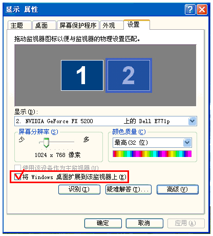 选中2号显示器,然后给它设置合适的分辨率,并勾选“将Windows桌面扩展到该监视器上”,就可以了。
