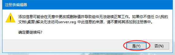 或双击导入“解决无法访问server.reg”(见附件)注册表文件解决