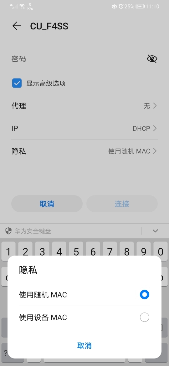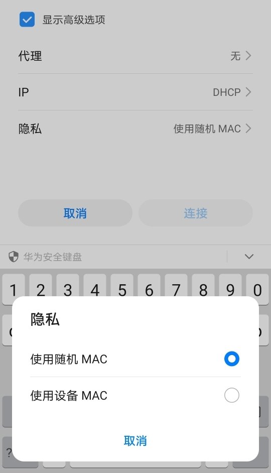 部分新型华为手机默认开启MAC地址随机化功能,这样能有效的防范WiFi探针。但此功能可造成申请的手机免认证失败,因为手机免认证是基于一个固定不变的MAC地址。
