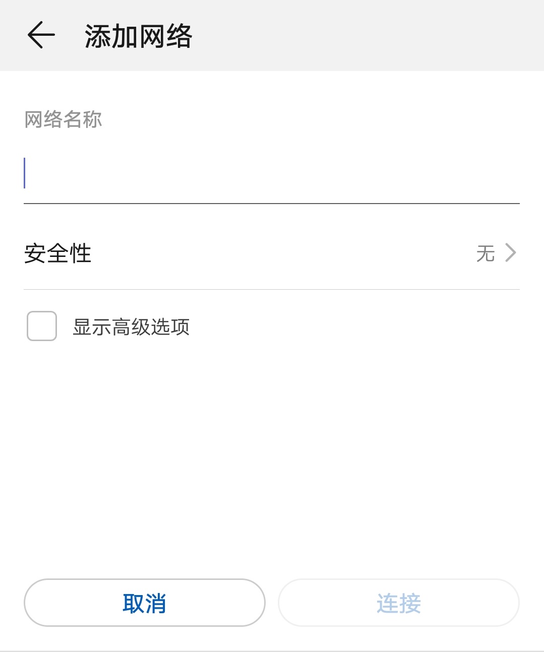 a、打开WLAN,选择“添加网络”,输入无线网络名称;