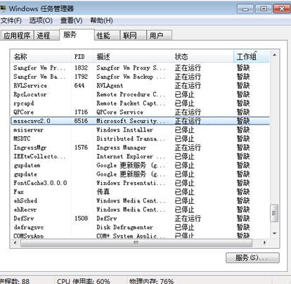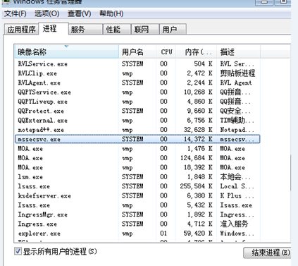 如下图,中毒主机会存在异常进程“mssecsvc.exe”。