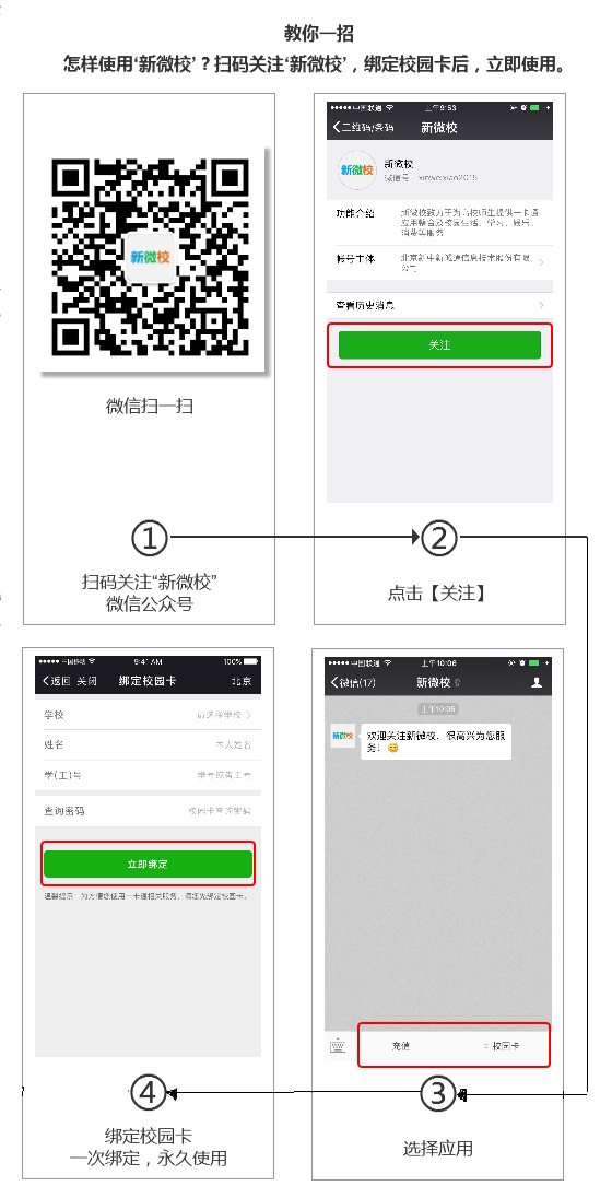 用户选择学校后,输入姓名、学工号、校园卡查询密码后绑定,如用户存在多张校园卡,需要选择一张默认绑定的校园卡。 |