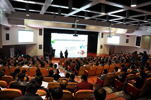 “体验新技术,交流新思想,搭建新平台,构建新模式。”4月22日上午,全省高校教育信息化暨网络安全工作会议在西安交通大学召开。依托西安交大成立的“陕西省高等教育数据中心”和依托西北大学成立的“陕西省教育信息化发展研究中心”在会上揭牌。陕西省教育厅厅长李兴旺、省委网信办副主任张琳,西安交大党委书记张迈曾、校长王树国出席会议。会议由陕西省教育厅张新民总会计师主持。省教育厅分管工作副厅长及相关业务处室主要负责人,省属各高校主要负责人、分管教育信息化工作的校领导和信息化部门负责人及社会相关企业负责人等参加了会议。学院信息处处长郭立文,网络中心主任徐华宇参加了此次工作会议。