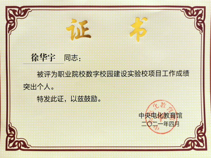 我校徐华宇老师参加,获评“职业院校数字校园实验校工作成绩突出人员”。