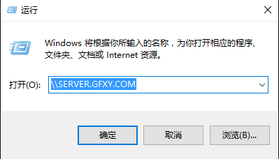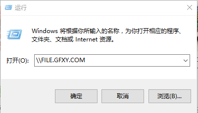 在运行中输入地址时加“.gfxy.com”: 注意最前面有两个"\"