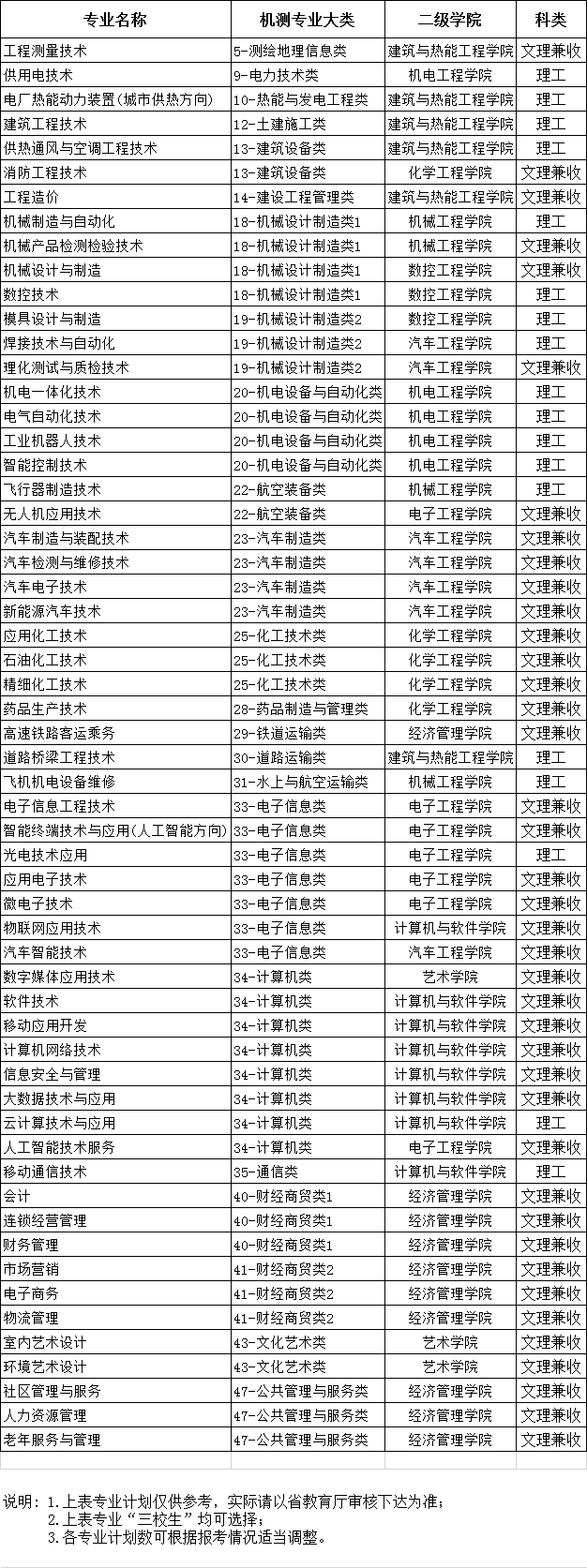 2020年单招招生专业情况说明