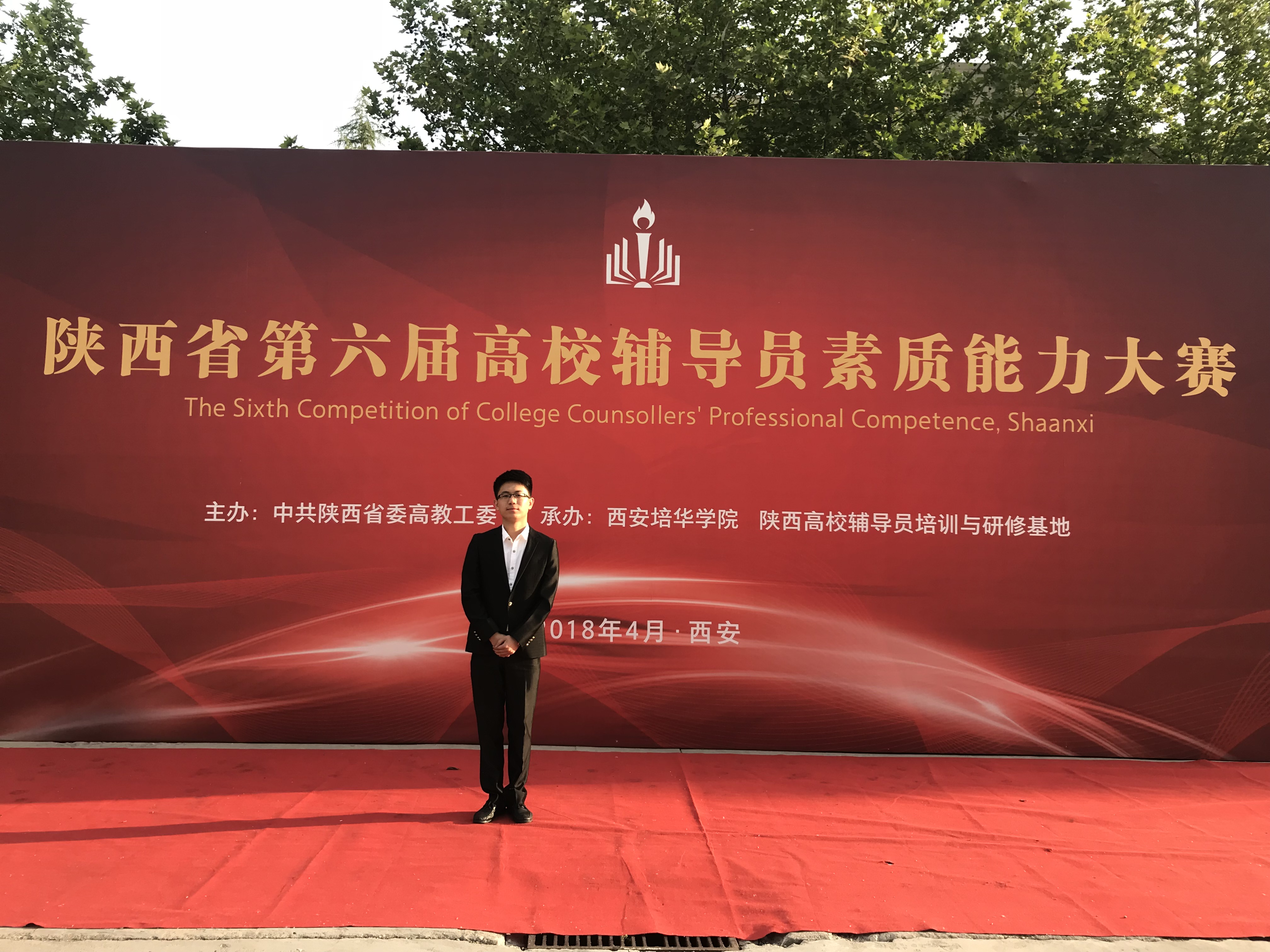 2018年4月26日至4月28日,由陕西省委高教工委主办、西安培华学院和陕西高校辅导员培训基地承办的陕西省第六届高校辅导员素质能力大赛在西安举行。来自全省80余所高校的124名选手参加了比赛。大赛于4月26日晚上7点开始,历时两天,分三个阶段进行,包含笔试(理论知识、网文写作)、案例分析、理论宣讲、谈心谈话等4个环节,全面考察辅导员的理论素养和工作能力。我校机电工程学院辅导员刘硕老师代表学校参赛并获得三等奖。