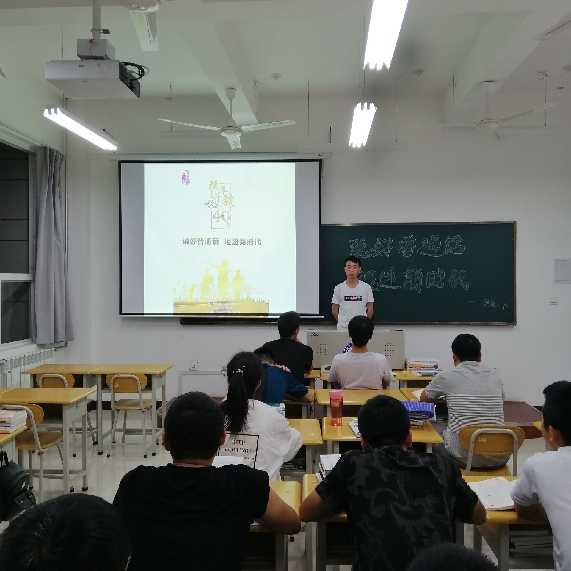 推普宣传周期间,我校学工部通过悬挂宣传横幅、播放推普宣传片等形式向全校师生宣传《中华人民共和国国家通用语言文字法》及“推普”相关知识,组织全校学生开展了“推广普通话”主题班会、宣传倡议活动和多场“说好普通话,迈进新时代”主题演讲活动,营造出浓厚的“推普”氛围。