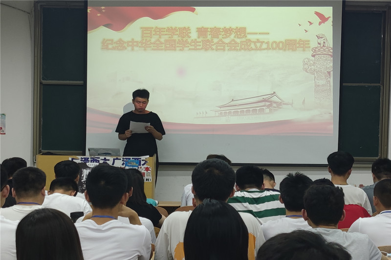首先,组织部部长王高阳传达了中华全国学联文章精神——《百年学联青春梦想——纪念中华全国学生联合会成立100周年》,让同学们清楚的认识到,学联学生会组织作为党领导下、团指导下的学生组织,一定能够在五四精神的激励下,不忘初心、牢记使命,在实现中华民族伟大复兴中国梦的感召下,团结凝聚广大青年学生书写中国青年运动史上浓墨重彩的一笔。百年学联,青春梦想!我们身处伟大的新时代,要勇做时代的弄潮儿,让青春在为祖国、为人民、为民族、为人类的奉献中焕发出更加绚丽的光彩。