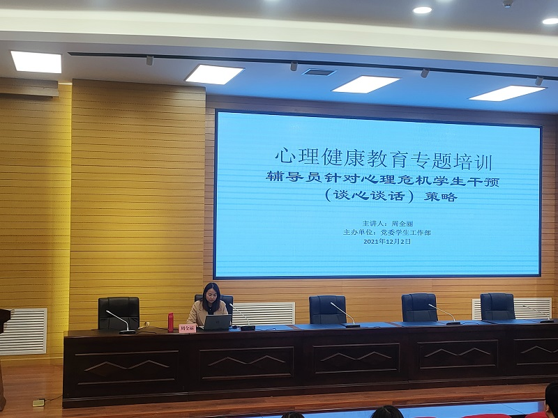 12月2日下午,党委新利体育官方网站部邀请中国心理学会临床与咨询心理学专业委员会注册心理师,陕西师范大学学生心理健康教育(咨询)指导中心副主任周全丽老师在教四报告厅为我校师生开展题为“辅导员针对心理危机学生干预(谈心谈话)策略”专题讲座。