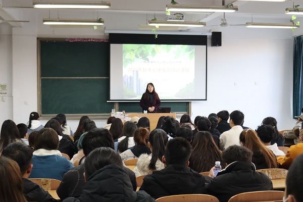 培训采用线上线下相结合方式进行,线下培训由心理健康教育中心王玲、冉丑龙、宋育亮三位老师讲授,王玲老师从心理委员基本素质讲起,对心理委员的工作职责和方法进行详细的讲解;冉丑龙老师通过“正念”体验活动,让同学们掌握正念知识及日常正念训练的方法要点,让学生学会安在当下、享受当下、感激当下;宋育亮老师向学生们介绍人际交往技巧,让心理委员关注班级学生人际交往中出现的问题,并及时给予调节。线上课程包括《积极心态-幸福人生》、《心理减压》、《构建和谐人际关系》三部分内容,依靠学习通平台创建课程,要求全体参与培训人员扫码进班,学习相应课程。