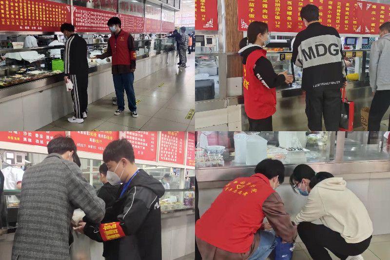 实践活动开展过程中,校学生会成员通过定点执勤、张贴标语、悬挂标牌等形式,引导在校师生遵守餐厅出入口管理规定,推荐使用公筷公勺、分餐分食,落实光盘行动,主动清理餐桌。特别是在疫情防控常态化期间温馨提醒师生要带好口罩,保持间距,文明购餐。为了带动更多同学文明用餐,倡导同学们主动践行美德,校学生会成员争做文明用餐表率,带头摒弃不文明的用餐方式,使校园风气在潜移默化中发生了改变,同学们维护用餐秩序和用餐环境的文明举止随处可见。