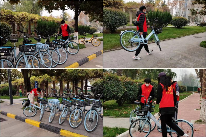 共享单车极大地方便了同学们的生活,但它随意停放的问题一直是影响校园容貌的“顽疾”之一,成为校园里较为突出的“不文明”现象和安全隐患。在校学生会组织部全体成员的共同努力下,校园路边整齐排列的共享单车使校园内焕然一新,单车摆放点周边环境变得干净整洁,原本杂乱无章的道路变得井然有序起来,路过的同学也不再为单车阻挡道路或“有车不能用”而苦恼。参与本次主题活动的校会成员们彰显了新一代大学生的风貌,为校园文明建设注入新的活力,通过此次实践活动,使我们充分认识到规范停车的重要性和必要性。在此,呼吁全校师生规范摆放共享单车,自觉维护共享单车摆放点卫生,为校园文明建设献出一份力,共同创建文明校园。