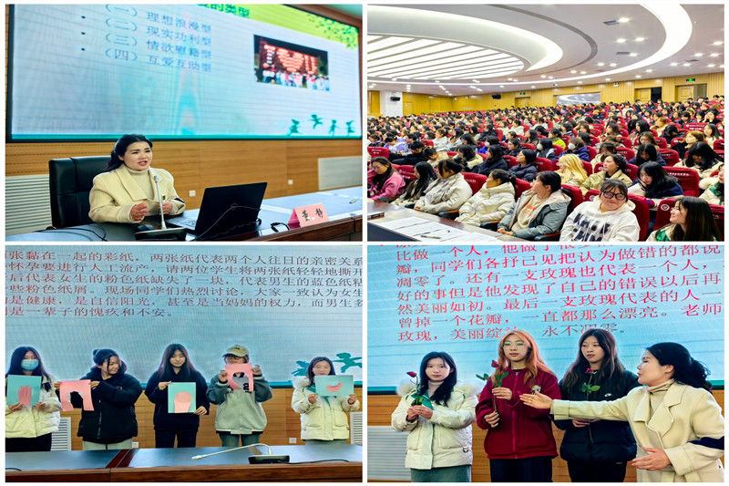 董老师从大学生的生理和心理特点入手,围绕大学生爱情观及性健康教育两大部分为同学们深入讲解了当代大学生应掌握的生理、心理健康知识,引导我校女生树立健康良好的价值观与恋爱观,增强自我保护能力,提高自我管理意识。