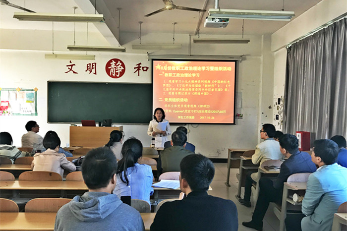 10月26日下午,新利体育官方网站党委在北校区教3-110教室开展了“学习贯彻十九大精神”政治理论学习活动,会议由新利体育官方网站党委书记沈惠同志主持。会上,与会人员还共同观看了《十九届中共中央政治局常委同中外记者见面会》《习近平为你描绘“新时代”》和《辉煌中国》视频,大家观看后心潮澎湃、反响热烈,纷纷表示:对党的十八大以来,在以习近平同志为核心的党中央的带领下,全国人民砥砺奋进、真抓实干,取得的历史性巨大成就感到无比骄傲,对身为一名中国人感到无比自豪。大家也将立足本职工作,主动作为、攻坚克难,撸起袖子加油干,努力为“新时代”的新发展、新成就作出自己的贡献。