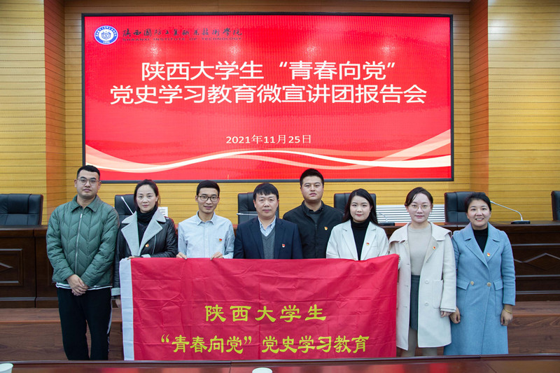 为深入学习习近平总书记在党史学习教育动员大会上的重要讲话精神,按照省委教育工委、省教育厅统一安排,结合学校党史学习教育计划,11月25日下午,陕西大学生“青春向党”党史学习教育微宣讲团来校作宣讲报告,我校大学生党史学习教育宣讲团成员、学生党员、发展对象和入党积极分子代表共计100余人聆听了报告会。报告会由校纪委书记王玉主持。