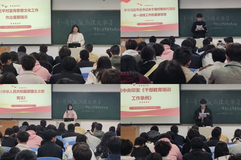 为深入贯彻学习党的二十大精神,落实习近平总书记关于青年工作的重要思想,新利体育官方网站党委学生党支部于2023年11月22日下午在教3-118开展了十一月份政治理论学习。支部所有成员参加了本次会议,会议由学生党支部宣传委员贾琬朝主持。