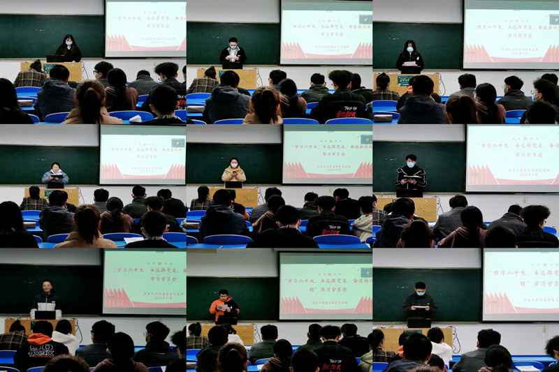 11月15日下午,新利体育官方网站党委学生党支部在教三112召开“学习二十大、永远跟党走、奋进新征程”学习分享会。学生党支部书记刘伟、宣传委员贾琬朝、组织委员李月娇及学生党支部的所有积极分子、发展对象、预备党员,通过线上和线下相结合的方式,参加了本次会议,会议由学生党支部积极分子杨淼同学主持。