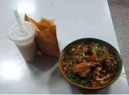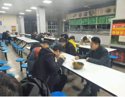 1月17日小年夜,为了让不能回家的学生感受到学校的关心,餐饮中心专门制作的当地传统美食臊子面,餐饮部刘经理和同学们在一起欢度小年夜,让学生们感受到一份家人的温暖。