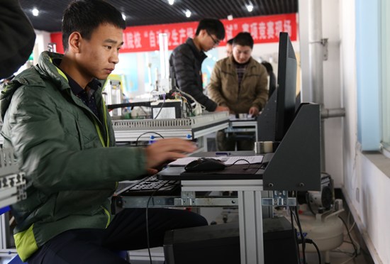 12月16日下午,我校机电学院举办自动化生产线安装与调试大赛决赛。本次大赛由实践教学管理处主办,机电学院承办,共71名学生报名参加比赛,经过预赛最终有14名选手进入决赛。 通过此项目竞赛,检验参赛选手的自动化系统的设计、安装、编程、调试、运行、维护等工程实施能力以及质量、效率和安全意识,提高学生学习的积极性,促进我校工学结合人才培养模式改革与创新,培养可持续发展、满足企业需求的自动化技术类高端技能型人才。