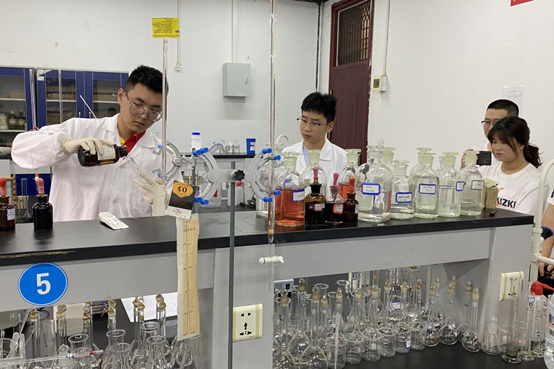 随后,张前前来到了学校化学实验室,与正在为全国职业院校技能大赛紧张备赛的学生进行现场指导和深入交流,通过亲手操作和实验为学生进行示范,讲解需要注意的各种问题,他也希望备赛学生们勤学苦练、不负众望、再创佳绩,在场备赛师生均表示张前前的指导训练方法别具一格,效率高、很实用。
