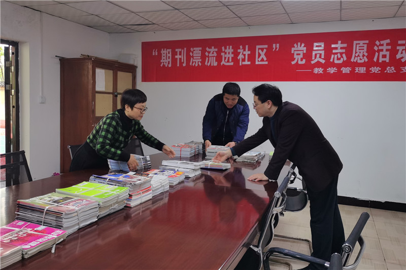 活动前期教学管理党总支组织党员精心挑选整理把内容适合社区老年阅读地养生修身、时事政治、花卉种植、营养美食、天文地理、人物传记、焦点评论、旅游体育等方面的期刊50余种共计656本,充实到学校社区活动中心阅览室,让这些可读性、实用性等较强的期刊继续发挥作用,促进知识共享,推广绿色阅读。