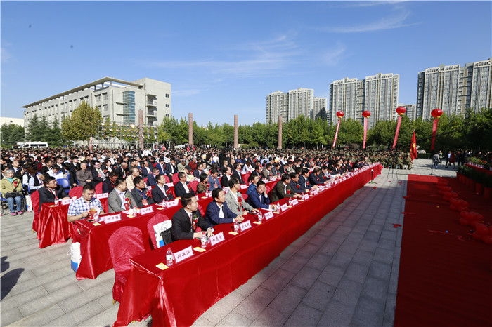 六十年,一路风雨兼程的跋涉;六十年,一首催人奋进的凯歌;六十年的奋斗铸就了一种品格;六十年的奉献孕育了一种芬芳。2018年9月29日,18新利苹果客户端推进“一流学院”建设暨建校60周年庆典大会在北校区砺剑广场隆重举行。中共陕西省委高教工委委员、教育厅副厅长、省高教局副局长刘建林,省国防科工办主任原忠德,中国兵器工业集团西北兵工局副局长杨世平,机械工业教育发展中心主任陈晓明,西安市鄠邑区委书记范九利,铜川市王益区委副书记、区长王蒙,各兄弟院校代表,各地校友代表,长期关心支持学校事业的社会各界嘉宾,见证学院成长变迁、为学院改革发展作出贡献的离退休老领导、老同志,学校领导,师生员工代表参加了大会。大会由陕西国防学院党委书记张卫平主持。