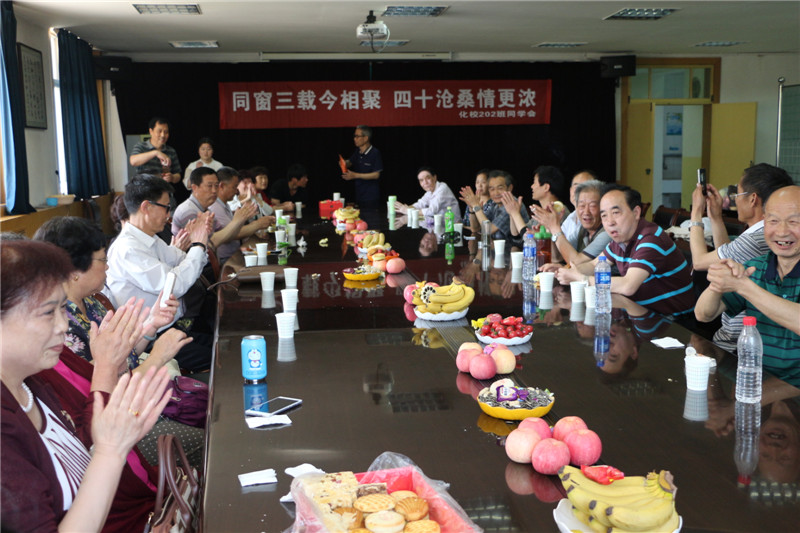 一辈子同学三辈子亲,割不断的情、分不开的缘,知心的话儿说不完。座谈会上,当年的班长杨怀洲首先发言,他拿出精心准备好的发言词,饱含深情地说,弹指一挥四十年,大家不远千里回到母校聚会,要感谢曹菊凤老师建立的微信群将大家联络到了一起,感谢每位不辞辛苦回来的校友,感谢筹备组,感谢热心的同学,大家相聚在一起,仿佛又回到了学生时代,一下子又年轻了。他激动地回忆起在校生活、学习的难忘场景,并表示“最美不过夕阳红”,勉励大家“老骥伏枥,志在千里”,心不分离、经常联系,一生就不会孤寂,期待着再次相聚。校友们随后纷纷发言,感谢到场聚会的每一个人,感谢学校对聚会提供的支持。 “饮水思源”,回想当年,是母校将大家汇聚在一起,又将学有所成的学子们送到了祖国各地不同的岗位,为大家搭建平台、铺垫了一生中的第一步,每个人也都不曾辜负学校,在各自岗位上为国家、为社会做出了自己应有的贡献。40年风风雨雨,社会变迁,如今大多数都已年过花甲,但心态依然年轻。今天大家相聚在母校,但愿时间不转,但愿太阳不落,好好享受聚会时间、享受生活、享受天伦之乐。有校友感慨道:时隔40年,再次踏上这片土地,就像做梦一般,一切看起来那么熟悉,又变得那么陌生。熟悉的是当年那依旧不变的感受,陌生的是40年来母校的沧桑巨变。看到学校发展到今天,这是历届领导和师生们不懈努力的结果。
