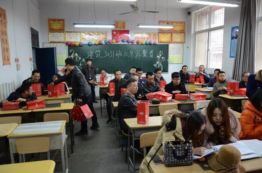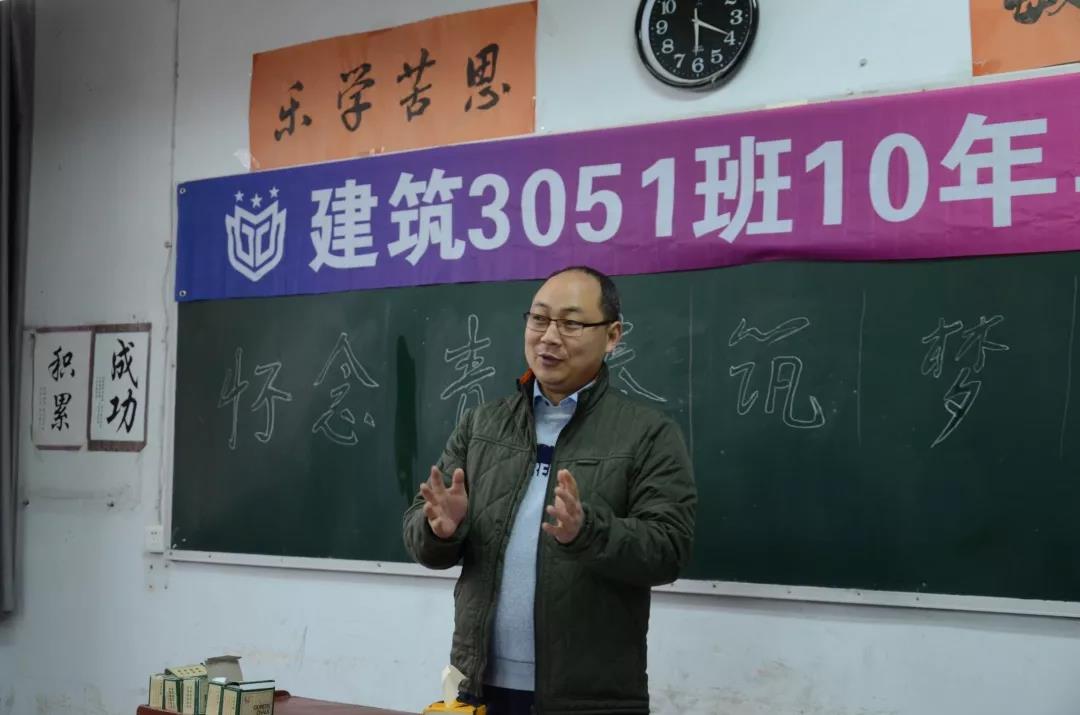 2018年12月23日,对建筑3051班的校友们来说是个特殊的日子,毕业10年后,多少次牵肠挂肚,几回回魂牵梦萦,终于成行,相聚母校。座谈会在老校区教学楼一楼120教室举行,建筑教研室主任聂瑞老师做了热情洋溢的讲话,对校友们返校聚会表示热烈欢迎。他向大家介绍了学校的发展历程和现有规模以及近年来取得的荣誉和成就,同时介绍了建筑专业的目前的师资、教学、实验实训情况,诚恳表示母校是大家永远的家,希望大家珍惜同学情、不忘师生情,有机会“常回家看看”。当年的带课老师也热忱欢迎大家返校聚会,并希望同学们能够保重身体,照顾好家庭,在自己的岗位上努力奋斗,做出成绩。