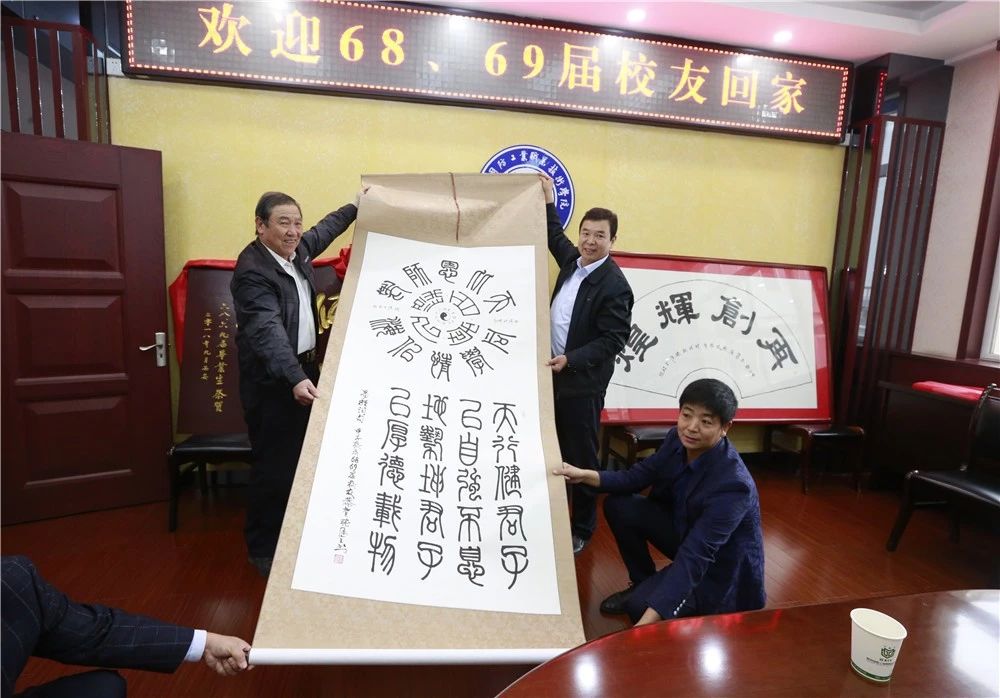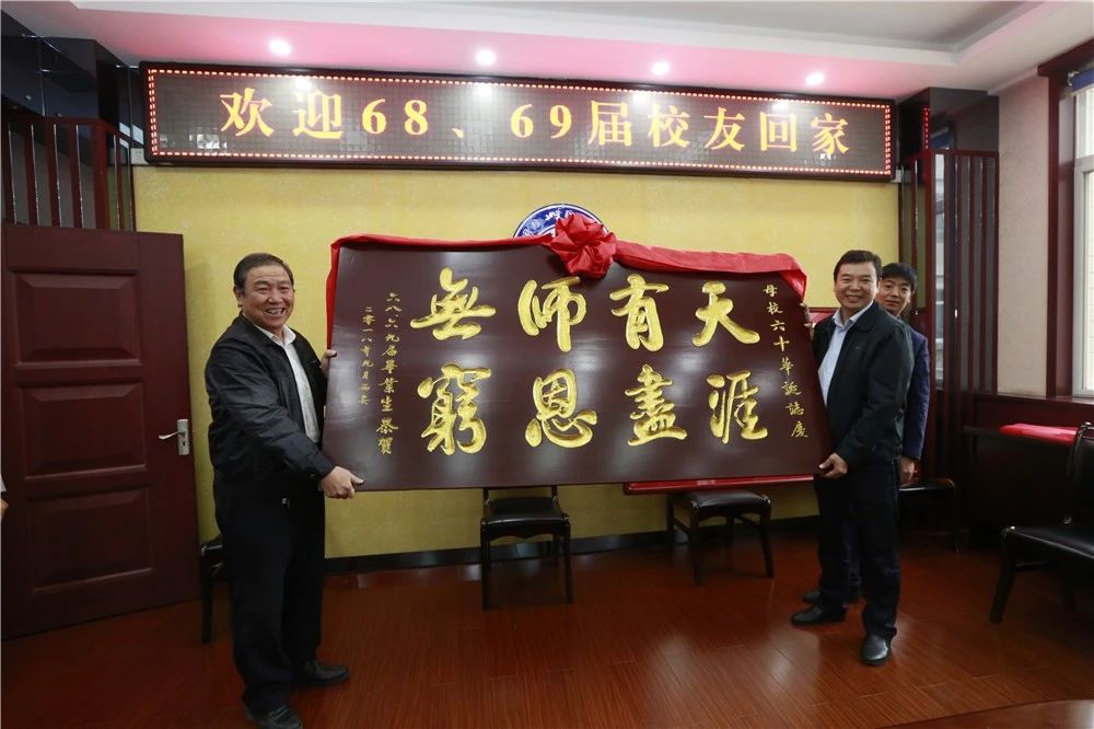 “欢迎68、69级校友回家。”王明哲热情接待了老校友一行,并和大家亲切座谈。揭幕仪式上,王明哲发表致辞。他向老校友们介绍了学校的历史沿革、发展历程和现今取得的成绩。他讲到,68、69届校友是学校建校以来第一届中专学员,是学校历史的亲历者,也是学校发展壮大的见证者。如今大家怀着对母校、对老师、对同学无比眷恋之情,在毕业50年后再次回到母校,令人非常感动,感谢校友们对母校的关心和支持,欢迎大家在母校60周年华诞返校共襄盛典。