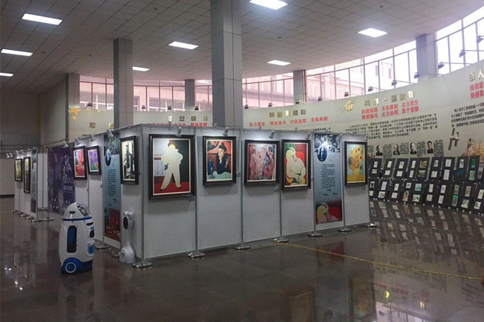 为方便读者更好地理解和欣赏每一幅作品,本次展览在每幅名家巨作下面均配有二维码,扫码即可聆听主播精讲,为每位参观者营造了可看可听、视听相结合的欣赏观展环境。同时,为增加观展趣味性,活动现场还专门配备了引导提醒、咨询参考、交流互动等多功能机器人“叮小胖”为大家答疑解惑,现场气氛热烈,互动不断。