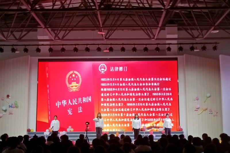 晚会在青春激扬的舞蹈《FANCY》中拉开帷幕,合唱歌曲《崇拜》及舞蹈《Good Time》将全场氛围点燃。法治主题朗诵节目《你好,宪法》和《宪法伴我们成长》铿锵有力,用声音向人们表达出当代宪法的法律地位和价值,将继续学法、用法、守法,不断提升法治意识,增强责任感和使命感,以实际行动践行宪法精神。随后,歌曲《我在人民广场吃炸鸡》、《知否,知否》、《我怀念的》、《骄傲》舞蹈《在1952》、《Pink Venom》、《我的梦》、《小欢喜》给大家带来一场如痴如醉的视觉和听觉享受,光影如织,月华如练,悠扬的音乐,轻盈的身姿,华美的服饰,绚烂的色彩。演出人员的每一次的转身和起落的背后都是日复一日的排练。舞台上的演员们绽放着绚丽的光彩,将在场师生引入一幅幅绝美的画卷。