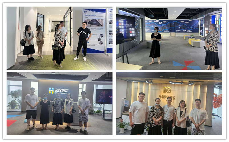 在相关企业负责人陪同下,管阳一行重点调研了未蓝文化、秀合传媒、盛世青春、吼浪配音工作室等影视动漫企业,详细了解企业发展状况、行业发展趋势和用人需求,与企业负责人就人才培养、课程设置、校企合作、毕业生实习、就业等方面进行了深入的交流。后续,e游小镇数字产业园将联合部分企业赴我校开展毕业生招聘工作。