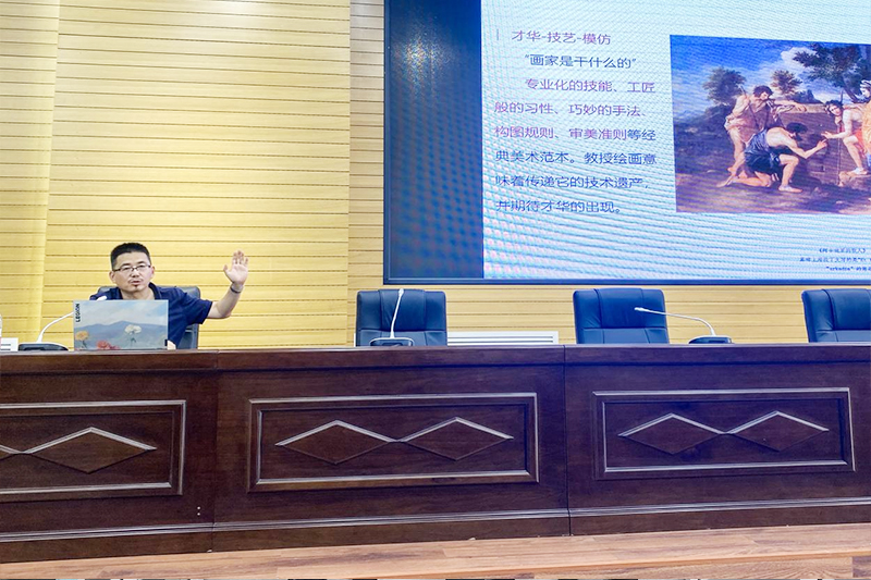 为深入推进党史学习教育,提升学校美育教育水平。6月29日下午,学校邀请西安美术学院教授、中国国家画院博士后武小川为师生做题为《美育的故事》的专题讲座。讲座在教四报告厅举办,由艺术与设计学院院长管阳主持。