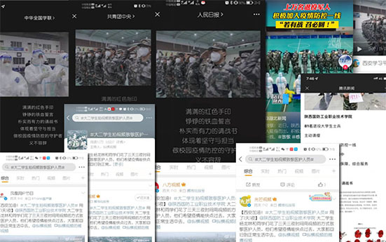 《微电影拍摄》课程团队积极开展线上集体备课活动,结合各个历史灾难时期所产生的艺术作品进行案例分析,对疫情期间的优秀数字视频作品进行解读。引导学生拍摄弘扬抗疫精神、积极向上、充满青春活力的正能量作品。学生创作出了《众志成城共克时艰》《西安加油》等视频作品,记录了学校疫情防控的点滴故事,医护工作者和志愿者坚守战“疫”一线的感人瞬间,展示了全校师生上下一心,众志成城抗击疫情的精神面貌。作品被人民日报官微等多家媒体平台报道转载。
