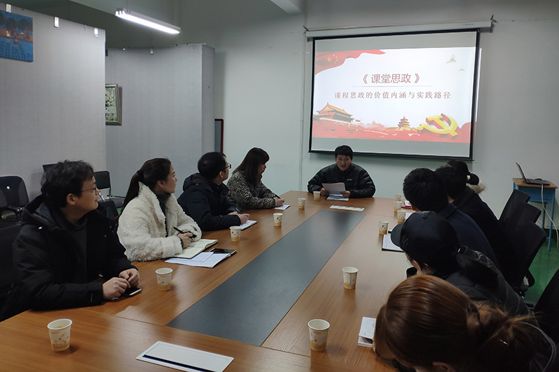 会上,房强老师带领全体老师认真学习了《教育部关于印发孙春兰副总理在全国深化职业教育改革电视电话会议上的讲话的通知》、《深化“三教”改革 提升技术技能人才培养质量》、《<人民日报>:深刻认识“课程思政”的时代价值》和《课程思政的价值内涵与实践路径探析》等文章。