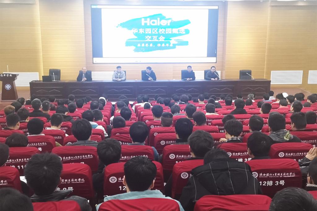 首先,沈博老师对海尔集团相关负责人的到来表示热烈欢迎,向学生详细介绍了海尔订单班的专业培养模式、优势及参加海尔订单班对于今后就业的重要作用,希望同学们珍惜机会;接着,付经理讲解了海尔公司发展历史、企业所需的人才、员工薪酬、福利和职业晋升路径以及订单培养方式;最后,优秀校友姚健为在场的同学们分享了个人在合肥海尔公司的成长经历和工作感受,并针对同学们对“海尔订单班”提出的问题进行了细致解答。