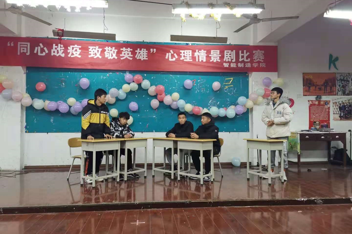 为进一步加强和改进大学生心理健康教育工作,培养学生的健全人格,提高大学生心理素质,促进大学生健康成长,12月1日晚上7点30分,智能制造学院心理情景剧大赛决赛在教二-131室如期举行,莅临本次比赛评委有学院党总支副书记沈博、学院心理指导教师张明及全体专兼职辅导员。经过前期层层角逐,6支参赛队伍脱颖而出,进军决赛。