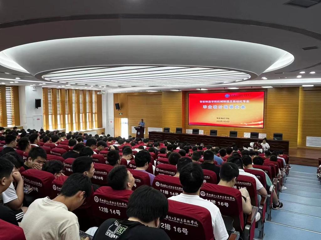 为确保2024届毕业生保质保量完成毕业设计要求,智能制造学院提前谋划、及时部署,7月4日上午,机制教研室在教学楼报告厅组织召开了2024届机械制造及自动化专业毕业设计动员会。智能制造学院党总支副书记兼副院长沈博、全体指导教师、2024届机械制造及自动化专业全体学生参加,会议由机制教研室主任李会荣主持。