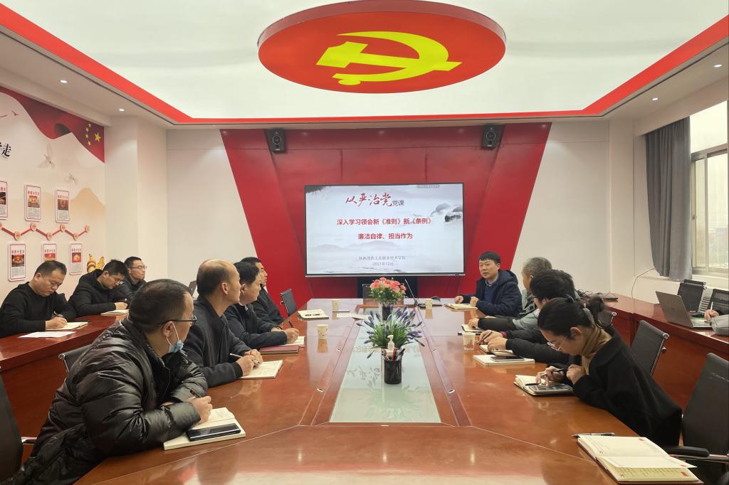 王玉书记结合中共中央颁布实施新修订的《中国共产党廉洁自律准则》和《中国共产党纪律处分条例》,分别从两项法规修订的背景意义、八大亮点、具体内容、负面清单案例、党员干部担当作为等五个方面为大家讲授了一场精彩的专题党课。王玉书记指出,智能制造学院承担着我校“高水平专业群”建设的工作,领导干部和关键岗位人员更要有规矩意识,议事决策要讲民主集中,涉及人财物的事项应会议研究决定,不越廉政红线,各岗位承担复杂的任务要经得起群众询问、经得起审计检查。王玉书记强调,在遇到艰难任务时,广大党员干部要冲锋在前、勇挑重担,领导干部要率先垂范、创新作为,增强责任感、使命感,促使党建业务融合发展,在学校新的发展征程中,让团队出彩,让个人受益。