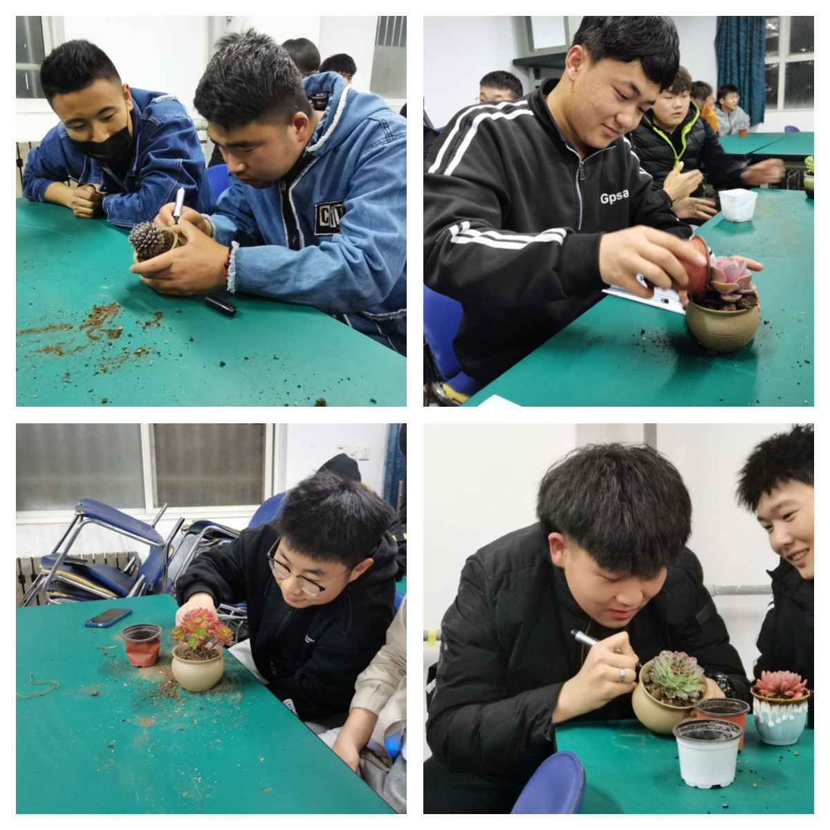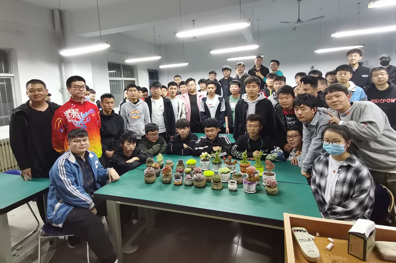 智能制造学院师生一起学知识、种多肉,共同美化校园环境。同学们干劲十足,刚到指定教室,就开始分工、分苗、移植,填土,浇水。在植物移植好后,每位同学都在花盆上留下了自己的班级、姓名,并将自己种好的植物送给自己的辅导员老师,和老师一起分享喜悦和对新生植物的希望。