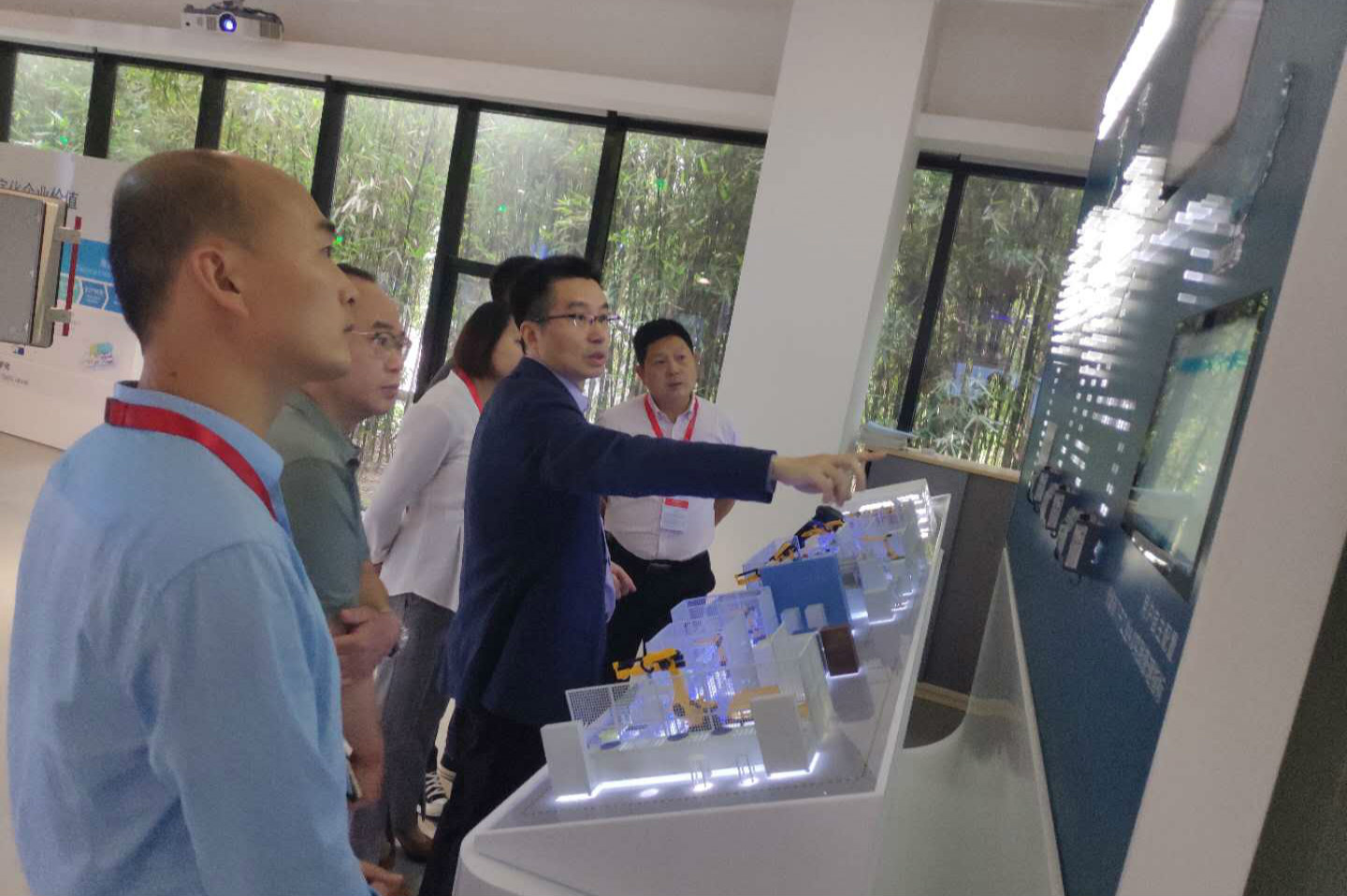 在张雁总监的带领下,李俊涛一行参观了能力中心、敏捷工厂、工业云平台、数字化生产线等实训基地和高端装备制造研发、预测性工程分析、虚拟测试、工业大数据、工业物联网等实验实训室。