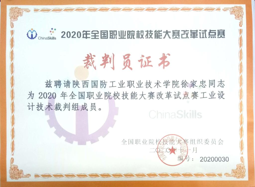 此次徐家忠教授受邀担任全国职业院校技能大赛改革试点赛裁判,不仅是组委会对我校教师专业知识、技能水平的认可,也是对我校“双高计划”建设背景下高水平师资队伍建设成效的肯定。通过执裁国家级技能大赛,提高了我校教师在全国工业设计技术相关领域的影响力,对我校智能制造学院高水平专业群的教学改革、课程建设、技能大赛和团队建设等发展起着重要的促进作用。